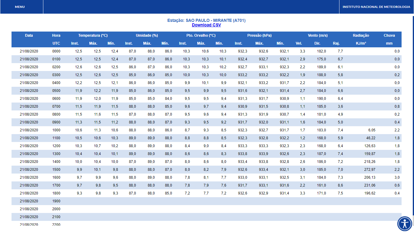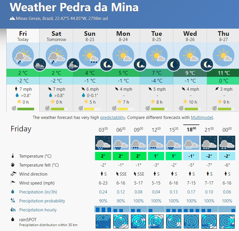 Enio Rezende Posted August 21, 2020 at 08:09 PM Share Posted August 21, 2020 at 08:09 PM Diferença da pancada no INMET Ouro Branco de ontem pra hoje às 14:00 (T instantanea) Ontem: 27,5° Hoje: 15,0° A previsão indicava máxima de 17° pra hoje. Considerando que foi máxima invertida e essa temperatura estava à meia-noite, ok. Mas no meio da tarde, no horário naturalmente mais quente do dia, mal passou de 15 graus. Amanhã segue sendo o dia mais esperado. Há muitos dias a previsão vem insistindo na máxima de 13 graus. Tenho observado que todos os últimos dias a previsão tem subestimado as máximas, sempre fica em média 1 grau abaixo do previsto. Se isso acontecer amanhã também é possível uma máxima de 12 graus. Ainda mais que estão apostando em 11mm de chuva!!!!! Comprei até um termômetro novo pra esse evento😂😂 O fio externo está pendurado do lado de fora da janela do meu apartamento no 4° andar. Apesar da péssima instalação, meu termômetro aqui em Lafaiete tá batendo agora com o INMET Ouro Branco, instantanea das 17h por lá tá 12,7° Pra essa MP ser histórica, qualquer máxima abaixo de 13,9° amanhã no INMET Ouro Branco já é recorde da estação aberta em 2006 11 1 Link to comment Share on other sites More sharing options...