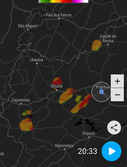 CloudCb Posted December 1, 2020 at 03:08 PM Share Posted December 1, 2020 at 03:08 PM Dezembro tem média de 27,2 mm no período 1991/2019 em Pombal. Com sorte esse valor será atingido até o dia 5 levando em conta as últimas previsões do GFS, mas como essas chuvas possuem caráter bem isolado, não vou contar muito com isso... Abaixo prints da previsão do GFS para o fim da tarde de quinta, dia 3. Essa daqui 👆 mostra um VCAN na região. Hoje e amanhã podem ser semelhantes a ontem, ou seja: quente durante a tarde e quase sem nuvens, e nublado a encoberto durante a noite com alguma pancada bem isolada (ontem ainda tive alguns pingos por volta das 22h). 9 3 Link to comment Share on other sites More sharing options...