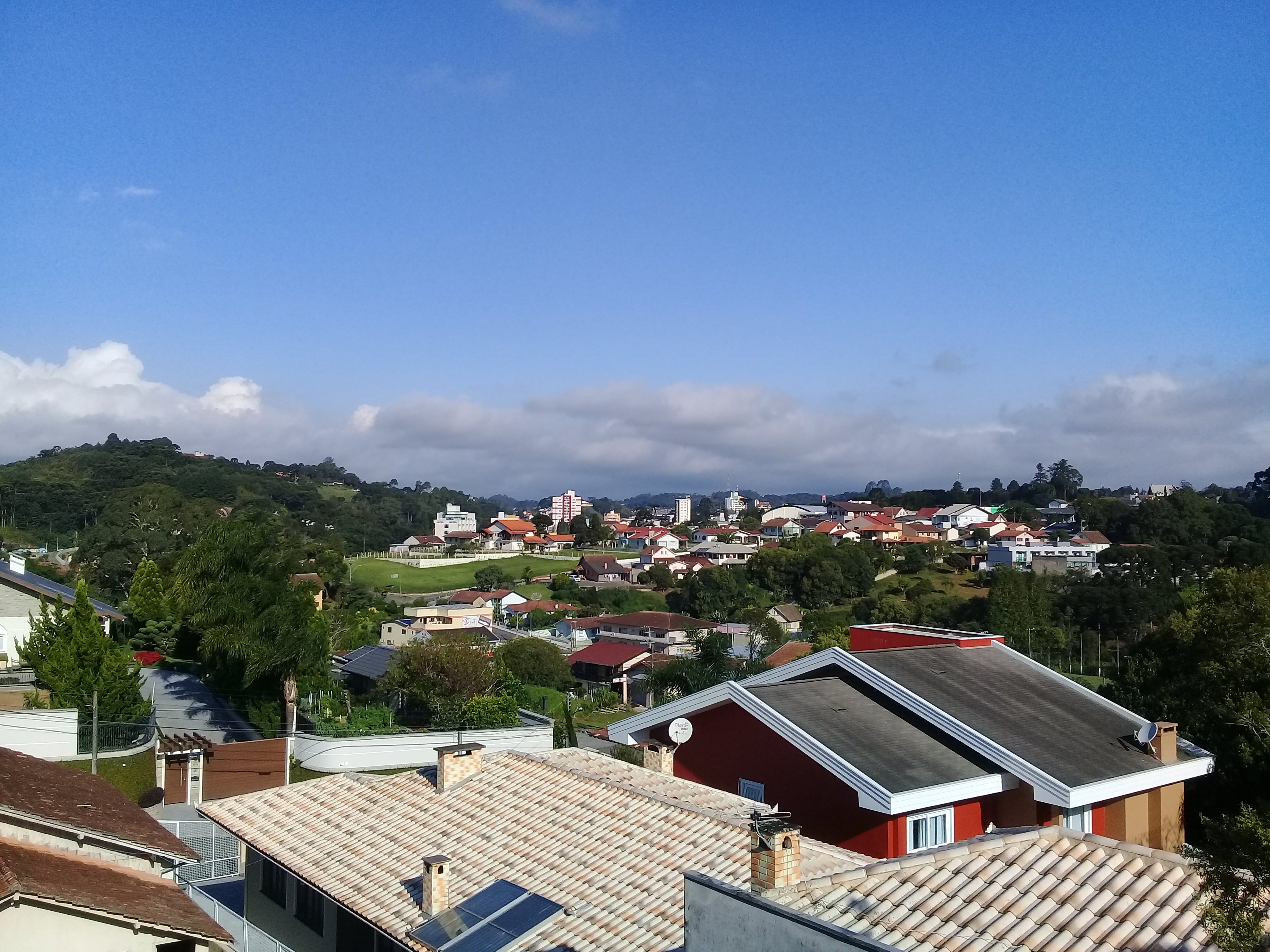 Carlos Campos Posted March 15, 2021 at 10:23 AM Share Posted March 15, 2021 at 10:23 AM (edited) Acordei durante a madrugada com o barulho de chuva...uma pancada relâmpago q não durou 2 minutos e logo o céu limpou, proporcionando um amanhecer bem bacana, dakeles q valem a pena gastar 5 minutinhos fazendo registro 👇 Nevoeiro apareceu nos locais de costume. A montanha ao fundo é o Morro Anhangava (1.430m), ao nordeste de Piraquara, em Quatro Barras. Em destaque no mapa, a "Vila Fuck", um local belíssimo com vista privilegiada da Serra do Mar e com uma baixada de dar inveja. Ironicamente a vila "cresceu" muito rápido de uns anos pra cá. Temperatura mínima 15,4°C neste amanhecer e a máxima deve atingir ou ultrapassar os 30°C. Edited March 15, 2021 at 10:35 AM by Carlos Campos 8 9 Link to comment Share on other sites More sharing options...