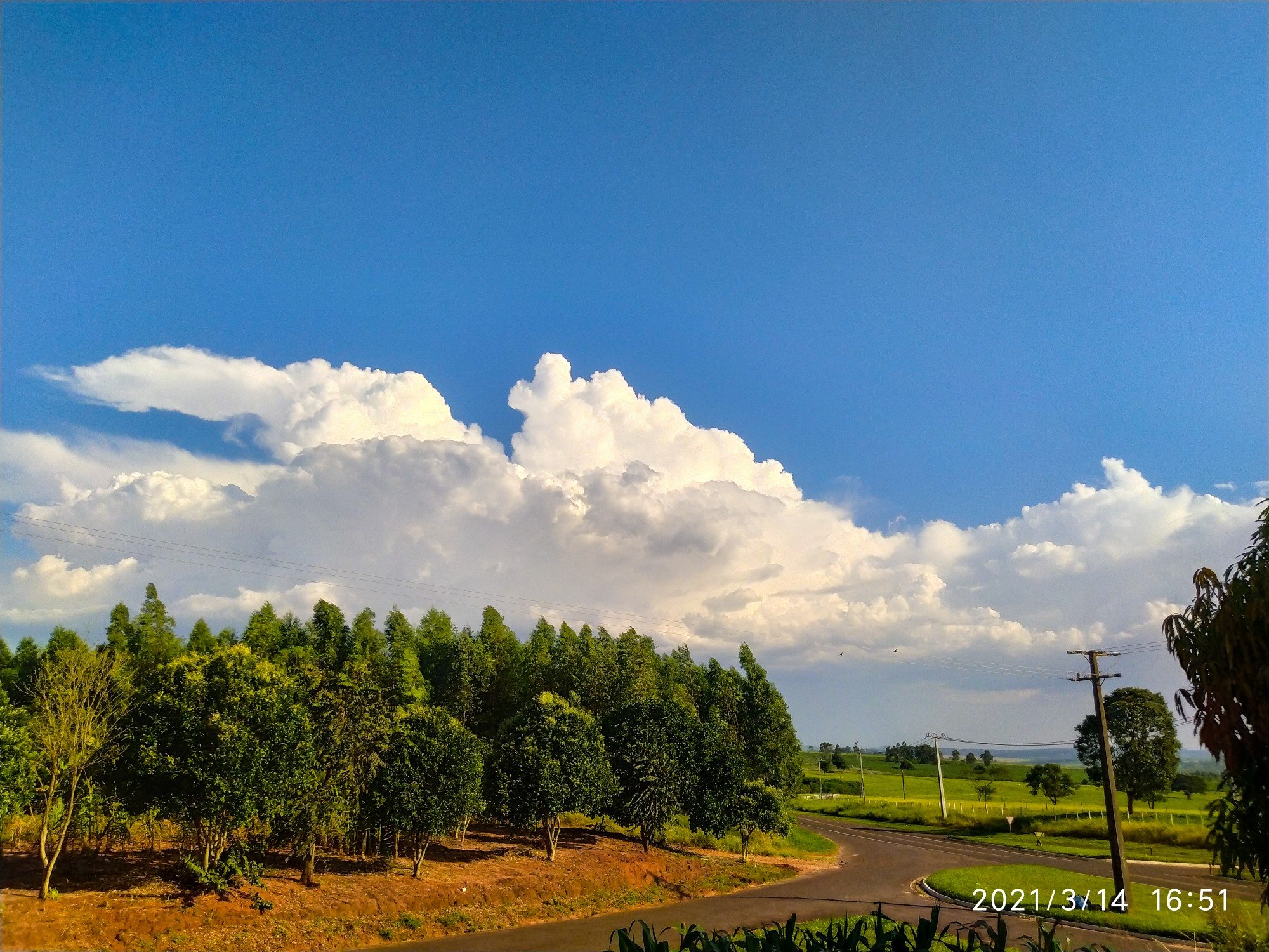 Carlos Campos Posted March 14, 2021 at 10:26 PM Share Posted March 14, 2021 at 10:26 PM Variação 17,7/30,9°C para lembrar q ainda estamos no verão. A tarde foi marcada pela calmaria desagradável até às 17h, quando teve início uma brisa do leste (menos intensa do q a de ontem). Também tivemos aglomerados de Cbs (basicamente no noroeste e no sul). O entardecer foi bonito, com resíduos de uma Cumulonimbus q surgiu no noroeste e provocou alguma chuva em algum lugar do oeste da grande Curitiba. 13 6 Link to comment Share on other sites More sharing options...