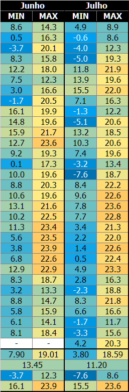 Carlos Campos Posted March 15, 2021 at 12:04 AM Share Posted March 15, 2021 at 12:04 AM (edited) 8 horas atrás, jean10lj disse: Preferencialmente considerar os Inmets e Davis. As epagris conhecidamente possuem aquecimento. Várias são bem fumadas. Sobre Pinheiro Preto, sempre foi fumadaça. Os dados de máxima são totalmente pirados. O @Fernando Keiser confirmou que a estação tem milho plantado bem perto. Não estou apenas assumindo isso. E não é do controle dele isso, e sim coisa do pessoal do local. Pegando estações confiáveis (exceto Ponte Serrada que provavelmente aquece uns décimos também): Percebe-se facilmente o aquecimento sem sentido. A região também é ventosa. É uma região fria também para máxima, não é quente assim. Da pra ver nas médias do inverno do ano passado. O milho faz as máximas aquecerem muito, além de manter a UR mais alta. Isso é comprovado inclusive pelo NWS nos EUA. Vargem Bonita no JJ 2020 (junho foi bem acima da média) Não dá pra negar q a vegetação alta, no caso um grande milharal, deva interferir nas condições térmicas do local onde são feitos os registros. A minha dúvida agora ficou por conta dos registros mínimos dentro desse milharal, já q o efeito "estufa" deve valer para ambos os casos, já q "vegetação fechada" mantém o calor durante a noite. Tanto q ninguém iria instalar uma estação dentro da mata fechada, se o interesse for registrar mínimas condizentes com áreas de baixada, q é o caso das estações do Fernando Keiser. Me pergunto agora, se fez 3,0°C no dia 11/3 dentro do milharal, quanto poderia ter chegado a mínima em área aberta, sem interferência da vegetação? Poderia ter sido inferior às mínimas da Serra Catarinense na mesma ocasião? Particularmente confio nos registros das estações do Keiser, tanto é verdade q eu publico os valores mais interessantes aki no fórum, mas agora já estou com uma pekena dúvida sobre isso. Você diz q o local é ventoso, e não duvido q seja, mas não no local onde está instalada a estação. A média mensal da velocidade dos ventos não atinge 6 km/h, sendo q em Agosto ficou nos 2,8 km/h. Setembro/2020 teve média de 3,4 km/h 👇 O interessante é q Março/21 até o momento a média da velocidade dos ventos está em 0 km, sendo 4,8 km/h a rajada máxima. Isso é muito curioso... Estaria o anemômetro com defeito? O milharal não tem o mesmo efeito anulador na circulação do ar, como por exemplo, uma parede de concreto. Deixo claro q não tenho outro parâmetro para comparação de ventos, a não ser os dados da própria estação. E não estou maldosamente sugerindo isso, pq sei do potencial das terras altas catarinenses, mas da impressão q a estação está dentro de um "poço" já q a circulação do ar é praticamente nula, ou está sendo atualmente. Vendo os dados de Setembro/20, consta máxima de 32,6°C no dia 26. No mesmo dia, Xanxerê teve 32,2°C e Caçador 31,7°C. No dia 12, Vargem Bonita teve 32,4°C, Xanxerê 29,4°C, Caçador 31,8°C e Joaçaba 32,8°C (Joaçaba com altitude cerca de 500m inferior à Vargem Bonita). No dia 13, Vargem Bonita 32,2°C, Xanxerê 31,3°C, Caçador 31,6°C. Todos os dados (Xanxerê/Caçador/Joaçaba) do INMET. Conclusão: a estação tem akecimento além do normal tanto no inverno quanto no verão e me parece q esse akecimento ocorre principalmente sob forte insolação. Quanto ao resfriamento fora do normal, acredito agora q também possa estar ocorrendo, e esta é a minha opinião pelo q eu vi até agora. Lembrando q até q se prove algo como verídico, tudo pode ser discutido até se chegar à unanimidade. Eu não me considero dono da verdade, mas sim, dono das minhas opiniões q naturalmente podem mudar. Em se tratando de opinião, considero o trabalho de vcs todos q montam as tabelas das diversas estações muito bom. Edited March 15, 2021 at 12:08 AM by Carlos Campos 9 2 Link to comment Share on other sites More sharing options...