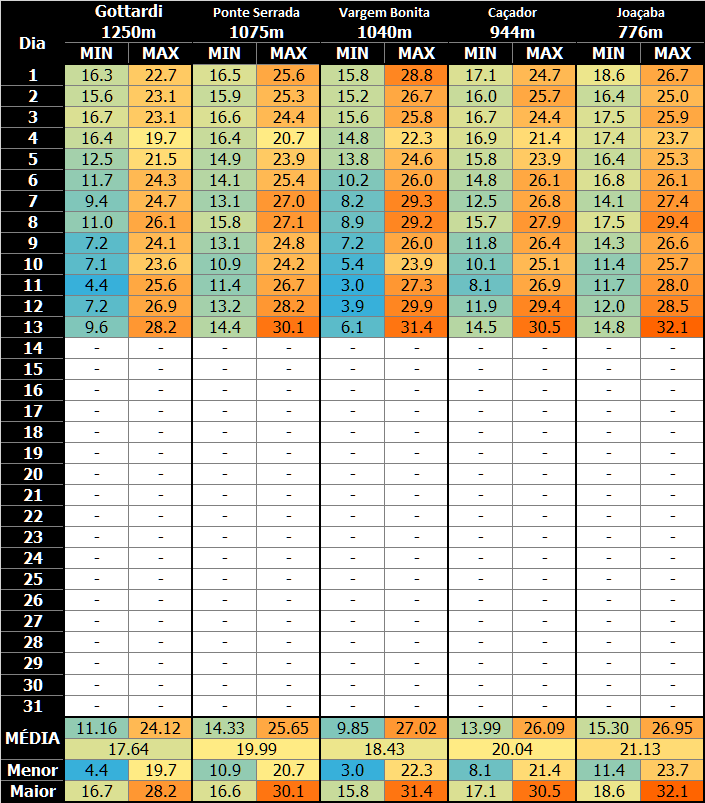 coutinho Posted March 15, 2021 at 03:18 PM Share Posted March 15, 2021 at 03:18 PM 15 horas atrás, Carlos Campos disse: Não dá pra negar q a vegetação alta, no caso um grande milharal, deva interferir nas condições térmicas do local onde são feitos os registros. A minha dúvida agora ficou por conta dos registros mínimos dentro desse milharal, já q o efeito "estufa" deve valer para ambos os casos, já q "vegetação fechada" mantém o calor durante a noite. Tanto q ninguém iria instalar uma estação dentro da mata fechada, se o interesse for registrar mínimas condizentes com áreas de baixada, q é o caso das estações do Fernando Keiser. Me pergunto agora, se fez 3,0°C no dia 11/3 dentro do milharal, quanto poderia ter chegado a mínima em área aberta, sem interferência da vegetação? Poderia ter sido inferior às mínimas da Serra Catarinense na mesma ocasião? Particularmente confio nos registros das estações do Keiser, tanto é verdade q eu publico os valores mais interessantes aki no fórum, mas agora já estou com uma pekena dúvida sobre isso. Você diz q o local é ventoso, e não duvido q seja, mas não no local onde está instalada a estação. A média mensal da velocidade dos ventos não atinge 6 km/h, sendo q em Agosto ficou nos 2,8 km/h. Setembro/2020 teve média de 3,4 km/h 👇 O interessante é q Março/21 até o momento a média da velocidade dos ventos está em 0 km, sendo 4,8 km/h a rajada máxima. Isso é muito curioso... Estaria o anemômetro com defeito? O milharal não tem o mesmo efeito anulador na circulação do ar, como por exemplo, uma parede de concreto. Deixo claro q não tenho outro parâmetro para comparação de ventos, a não ser os dados da própria estação. E não estou maldosamente sugerindo isso, pq sei do potencial das terras altas catarinenses, mas da impressão q a estação está dentro de um "poço" já q a circulação do ar é praticamente nula, ou está sendo atualmente. Vendo os dados de Setembro/20, consta máxima de 32,6°C no dia 26. No mesmo dia, Xanxerê teve 32,2°C e Caçador 31,7°C. No dia 12, Vargem Bonita teve 32,4°C, Xanxerê 29,4°C, Caçador 31,8°C e Joaçaba 32,8°C (Joaçaba com altitude cerca de 500m inferior à Vargem Bonita). No dia 13, Vargem Bonita 32,2°C, Xanxerê 31,3°C, Caçador 31,6°C. Todos os dados (Xanxerê/Caçador/Joaçaba) do INMET. Conclusão: a estação tem akecimento além do normal tanto no inverno quanto no verão e me parece q esse akecimento ocorre principalmente sob forte insolação. Quanto ao resfriamento fora do normal, acredito agora q também possa estar ocorrendo, e esta é a minha opinião pelo q eu vi até agora. Lembrando q até q se prove algo como verídico, tudo pode ser discutido até se chegar à unanimidade. Eu não me considero dono da verdade, mas sim, dono das minhas opiniões q naturalmente podem mudar. Em se tratando de opinião, considero o trabalho de vcs todos q montam as tabelas das diversas estações muito bom. AQUELA REGIÃO, BAIXADAS, TEM FORTE AMPLITUDE. NUM INVERNO LÁ, UM PRODUTOR, TINHA DADOS DE BAIXADA, COMUM TER -3/-8 E 23/27 NO MESMO DIA. SÓ NÃO SEI COMO ERA O ABRIGO. 5 Link to comment Share on other sites More sharing options...