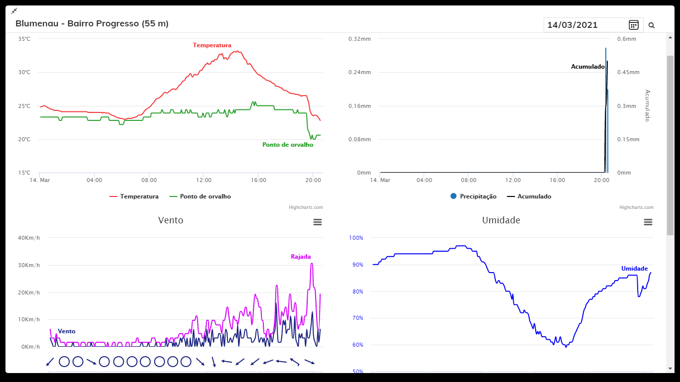 Fabio Galle Posted March 14, 2021 at 05:06 PM Share Posted March 14, 2021 at 05:06 PM 34 Celsius. Umidade Relativa: 59% POMERODE/SC. 14H. DIAS QUENTES. NOITES AMENAS. https://www.wunderground.com/dashboard/pws/IPOMER7 11 1 Link to comment Share on other sites More sharing options...