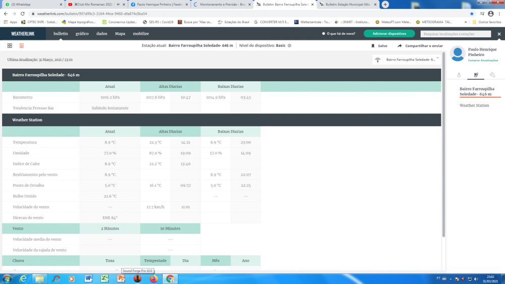 Fernando Keiser Posted March 16, 2021 at 03:47 PM Share Posted March 16, 2021 at 03:47 PM Boa tarde a todos! Apenas esclarecendo que a estação de Vargem Bonita está sim em um milharal, que deve ter a área totalmente limpa em breve, pois logo teremos geadas por lá. Não é uma opção minha e não há outro local próximo que seja em uma área limpa e que tenha mínimas tão boas no inverno. É realmente o melhor local para mínimas do Oeste e Meio Oeste de SC, então não faz sentido eu tirar de lá, até porque o objetivo é justamente as mínimas no inverno. 12 1 Link to comment Share on other sites More sharing options...