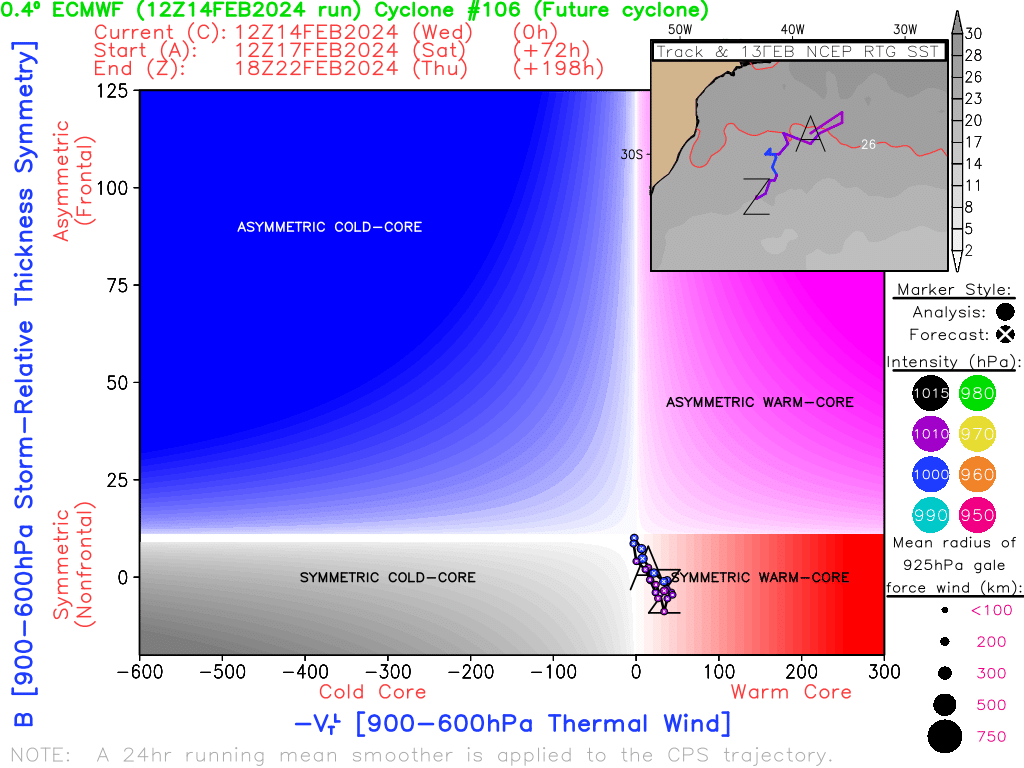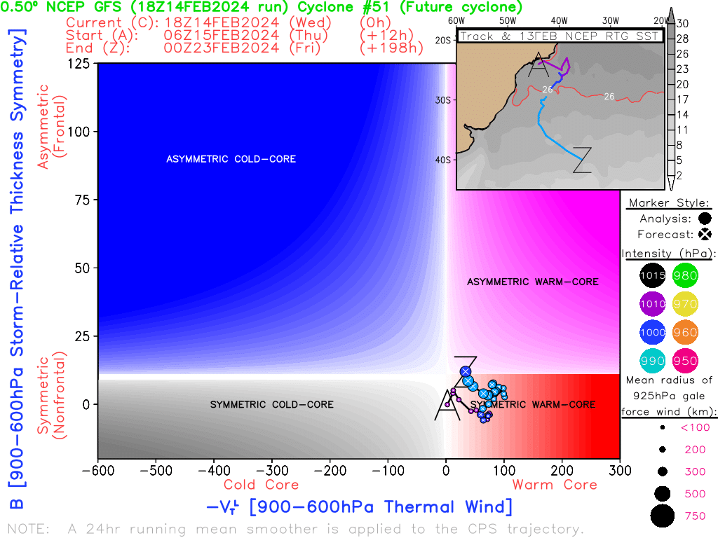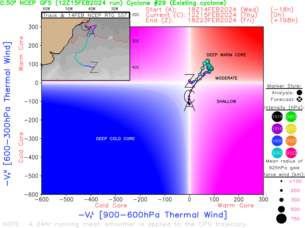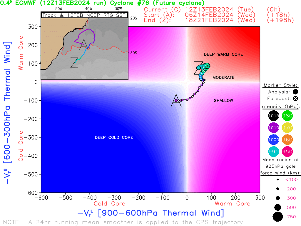Rodolfo Alves Posted February 14, 2024 at 12:00 AM Author Share Posted February 14, 2024 at 12:00 AM SAÍDAS DESSA TARDE DOS PRINCIPAIS MODELOS DE PREVISÃO DO TEMPO SÃO QUASE UNANIMES NA FORMAÇÃO DE UMA TEMPESTADE TROPICAL NO ATLÂNTICO SUL DAQUI A 4-7 DIAS. UMA DAS SAÍDAS MAIS AGRESSIVAS É A DO MODELO EUROPEU DESTA TARDE. NA ANIMAÇÃO É POSSÍVEL VER QUE A BAIXA SE FORMA NA COSTA DO RJ, SE MOVE PARA O SUL, E A MEDIDA QUE AVANÇA, SE TRANSFORMA EM UM SISTEMA PURAMENTE TROPICAL. POSTERIORMENTE A BAIXA FICA RONDANDO A COSTA DO SUL DO PAÍS. DIAGRAMA DE CICLOFASE EVIDENCIA UM SISTEMA PURAMENTE TROPICAL E SIGNIFICATIVO. DIRIA QUE É UMA DAS SOLUÇÕES PARA SISTEMA TROPICAL MAIS AGRESSIVAS QUE JÁ VI NO EURO PARA A NOSSA COSTA. OUTROS MODELOS COMO GFS, ICON E CMC SUGEREM TAMBÉM A BAIXA EVOLUINDO NA COSTA DO SUL COMO SUBTROPICAL OU TROPICAL O MODELO DO INMET COSMO TAMBÉM VEIO BASTANTE AGRESSIVO, SUGERINDO UM SISTEMA TROPICAL ATUALMENTE O ATLANTICO SUL NA COSTA DO SUL ESTÁ MAIS QUENTE QUE O NORMAL O QUE PODE FAVORECER O DESENVOLVIMENTO DE UM SISTEMA TROPICAL. A SST ESTÁ ENTRE 26-28 GRAUS, O QUE SUPORTA A FORMAÇÃO DE UM SISTEMA TROPICAL. POR ENQUANTO OS MODELOS AINDA MANTÉM O SISTEMA EM ALTO-MAR DE UMA FORMA GERAL, NO ENTANTO, GFS 18Z E COSMO, TRAZEM PARA MAIS PRÓXIMO DA COSTA. UM VÓRTICE CICLÔNICO EM MÉDIOS NÍVEIS QUE IRÁ SE DESENVOLVER NO INTERIOR DO RS/SC SERÁ VITAL PARA MANTER O SISTEMA EM ALTO-MAR, E EVITAR QUE VENHA PARA A COSTA. QUALQUER ALTERAÇÃO NESTE VÓRTICE PODERÁ TRAZER A BAIXA PARA MAIS PRÓXIMA DA COSTA. CASO ESSE SISTEMA SE FORME EM TEMPESTADE SUBTROPICAL, SERÁ NOMEADA DE "AKARA", O PRIMEIRO DA NOVA LISTA DO CHM, COMO JÁ DITO PELO EDU. VAMOS ACOMPANHAR O QUE VAI DAR.... FINALMENTE VOLTAMOS A FALAR DE CICLONES SUBTROPICAIS/TROPICAIS DE UM LONGO HIATO. 12 Quote Link to comment Share on other sites More sharing options...