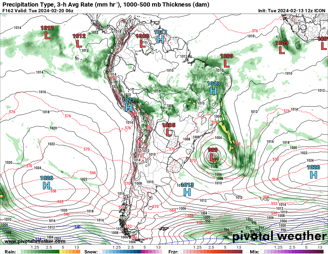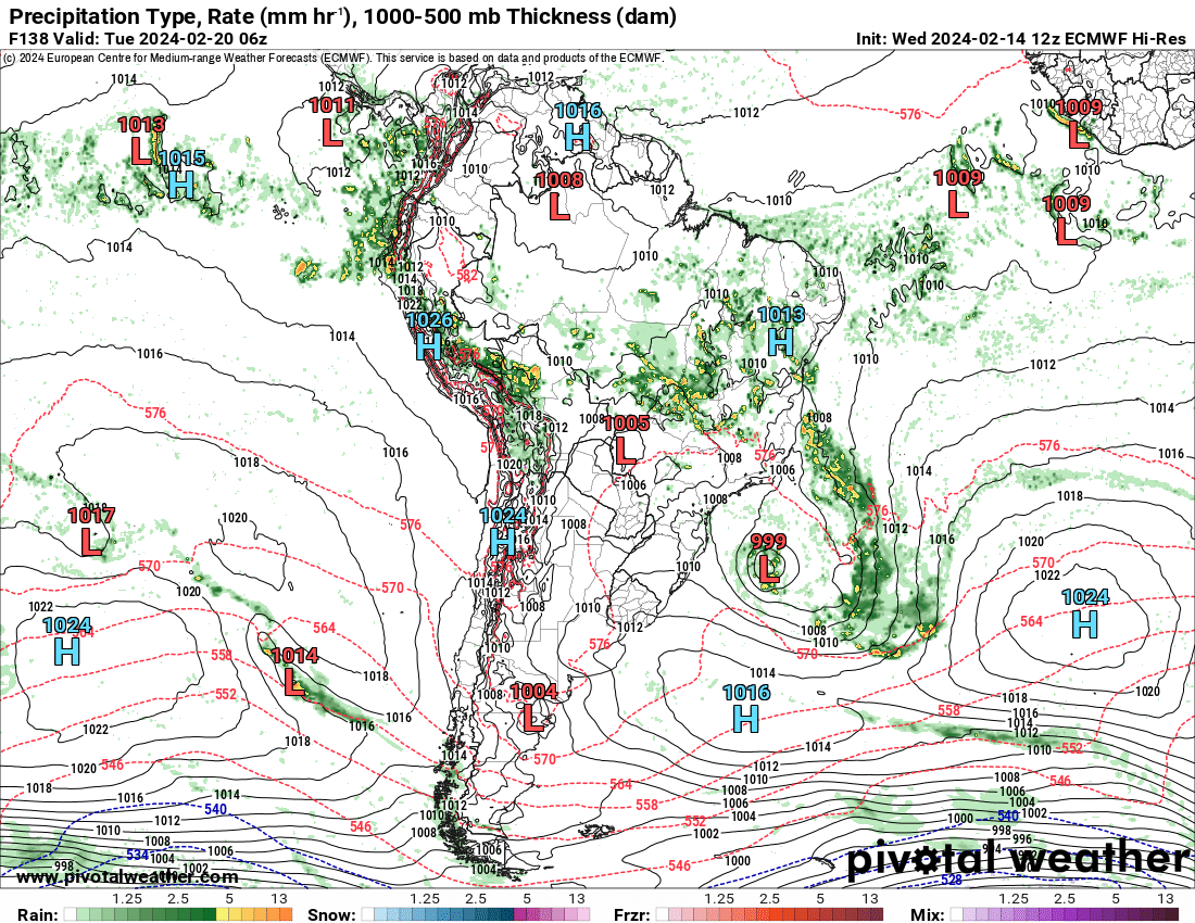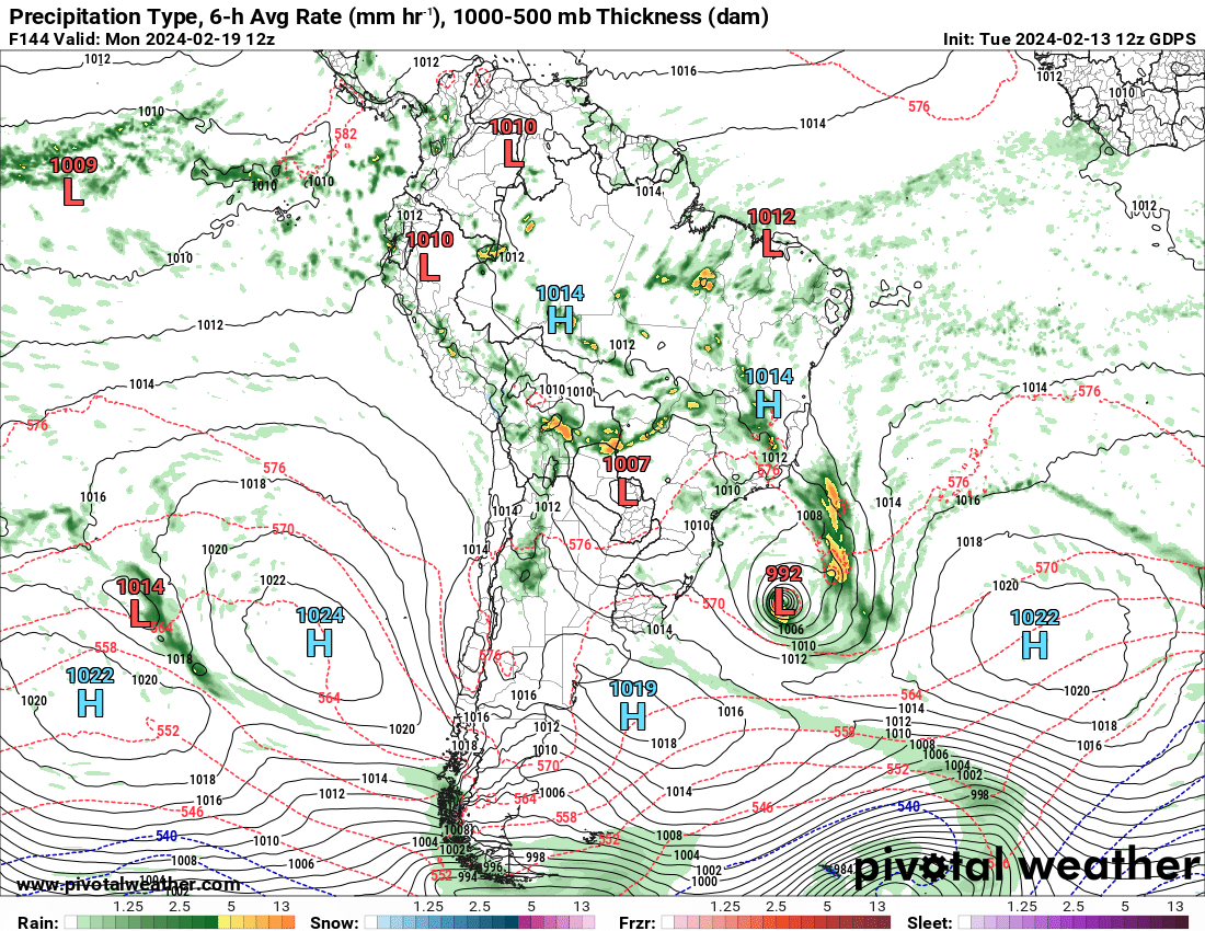 Everton dos Santos Posted February 13, 2024 at 11:03 PM Share Posted February 13, 2024 at 11:03 PM Última rodada do modelo Europeu mostra uma baixa pressão bem desprendida de outros sistemas, totalmente Tropical a partir do dia 17 e rumando sentido sul, para próximo da costa do RS. Se não estiver errado, teríamos uma Tempestade Tropical. 6 Quote Link to comment Share on other sites More sharing options...